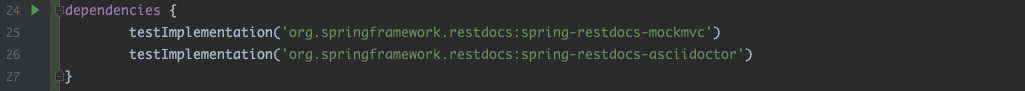 - @AutoConfigureRestDocs, @RunWith(SpringRunner.class) 및 @Test와 같은 SpringRestDocs 어노테이션을 추가한다.