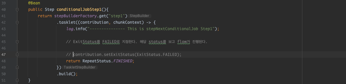 그래서 분기처리를 위해 상태값 조정이 필요하면 ExitStatus를 조정해야한다.