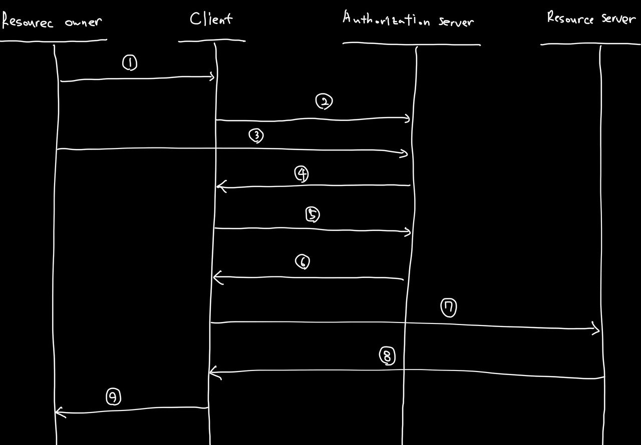- Resource Owner는 로그인 버튼을 누르는 등의 서비스 요청을 Client(애플리케이션)에게 전송한다.