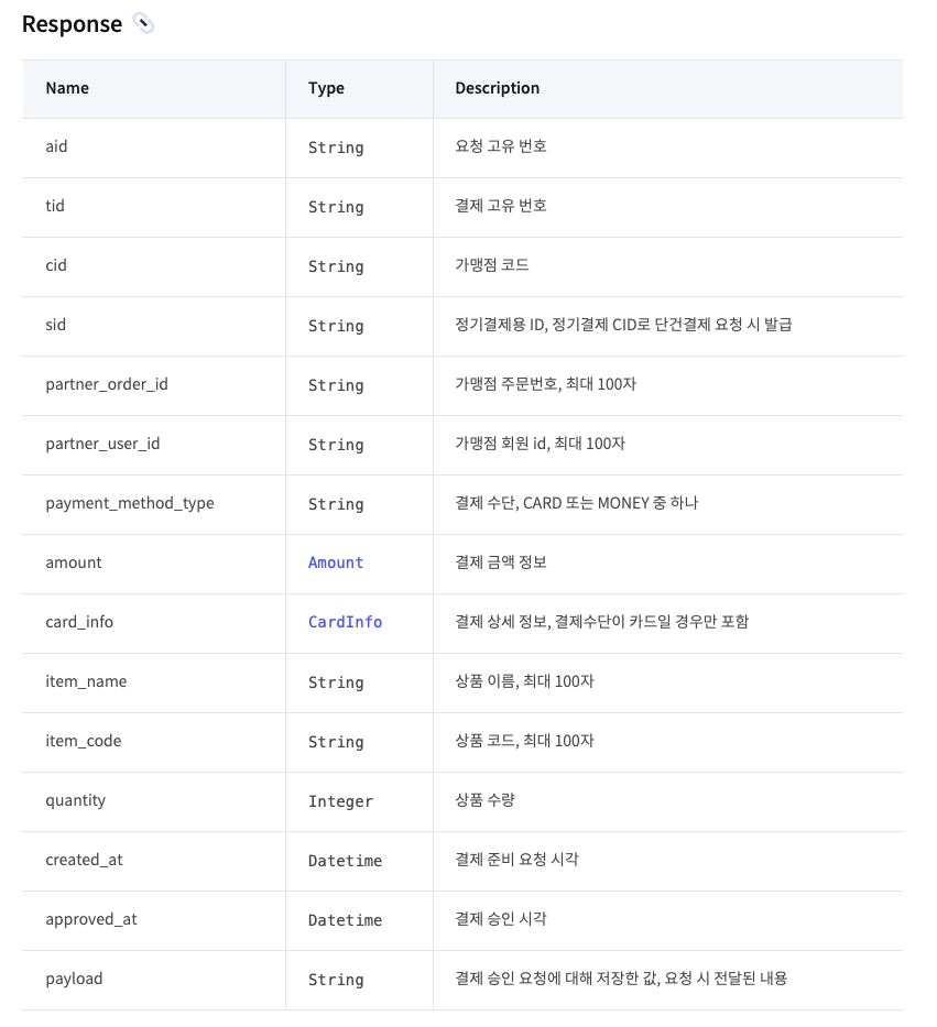 - 결제 승인 API를 호출하면 결제 준비 단계에서 시작된 결제건이 승인으로 완료처리 된다.