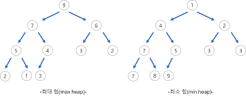 - 최대 힙 : 부모의 키 값이 자식의 키 값보다 크거나 같다.