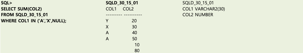 - (X, 30), (A, 40), (A, 50)이고 NULL은 넣는다고 뽑는게 아니다.