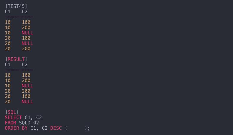 - NULL LAST -> NULL값을 마지막에 정렬시켜준다.