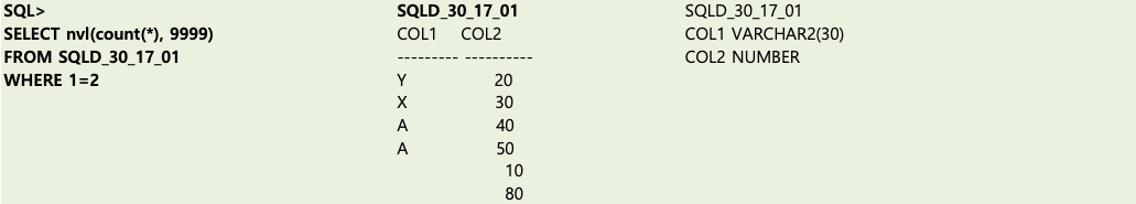 - NVL -> COUNT(*) IS NULL이면 9999, 아니면 COUNT(*)을 반환한다.