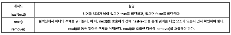 컬렉션에 저장된 요소들을 순차적으로 읽어오는 역할을 한다.